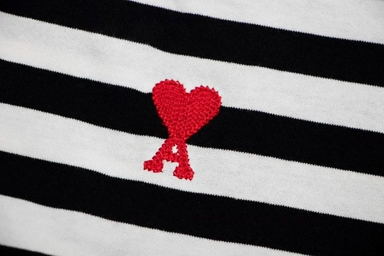 AMIPARIS new collection: striped T-shirt with heart embroidery-5198