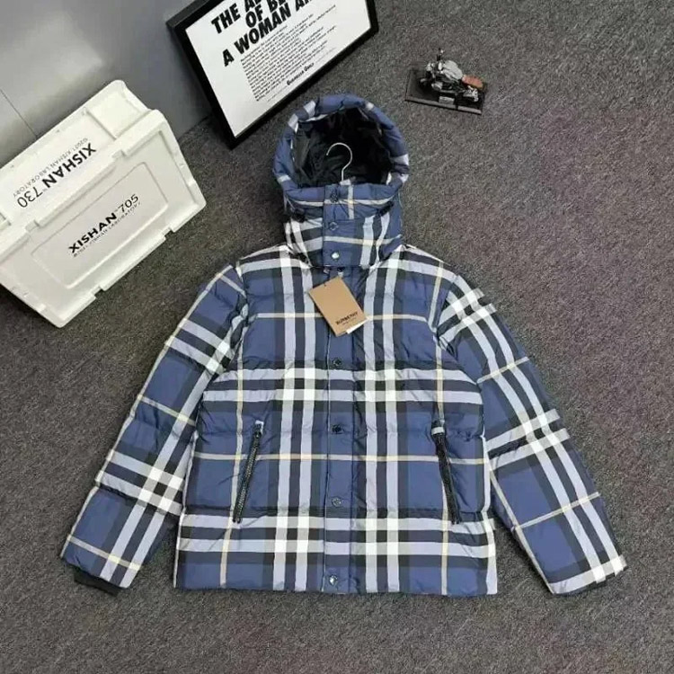 Burberry Jacket Detachable Hood Night Plaid Down Jacket-4329
