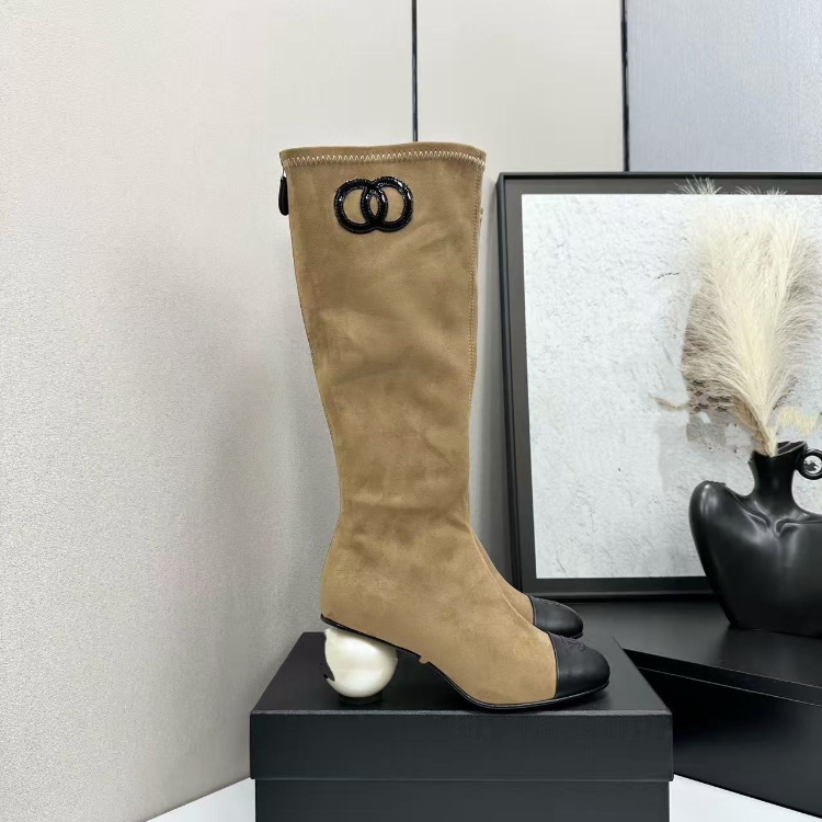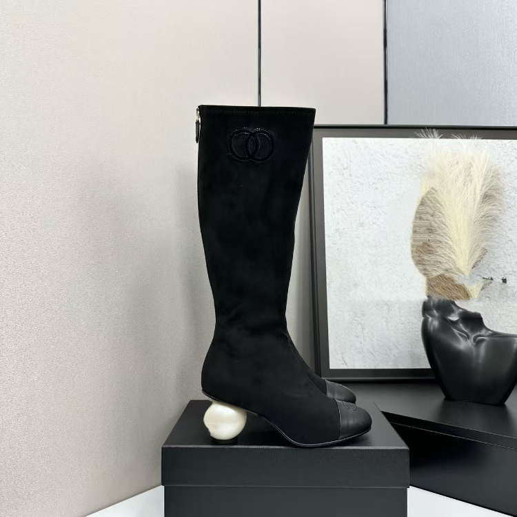 Chanel new knee-high boots with back zipper-5772