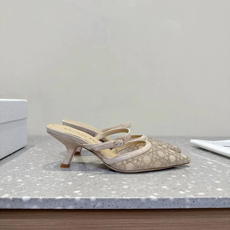 DIOR Capture pointed-toe mesh slingback kitten heels with rhinestone embellishments-5207