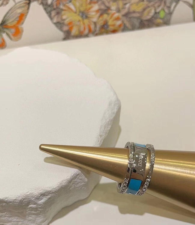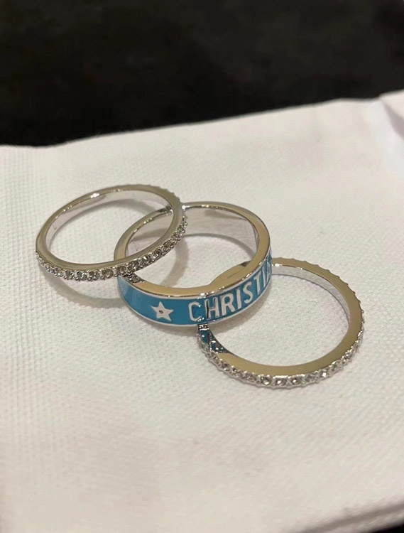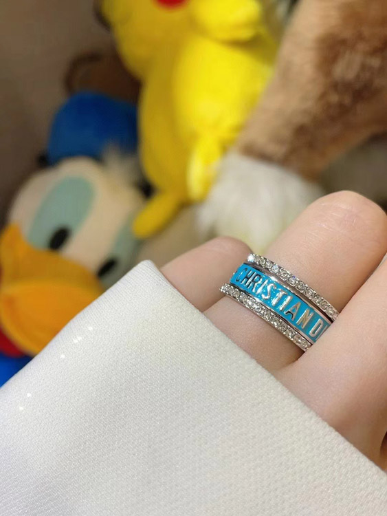 Dior gold letter blue enamel diamond ring set three-piece set-3710
