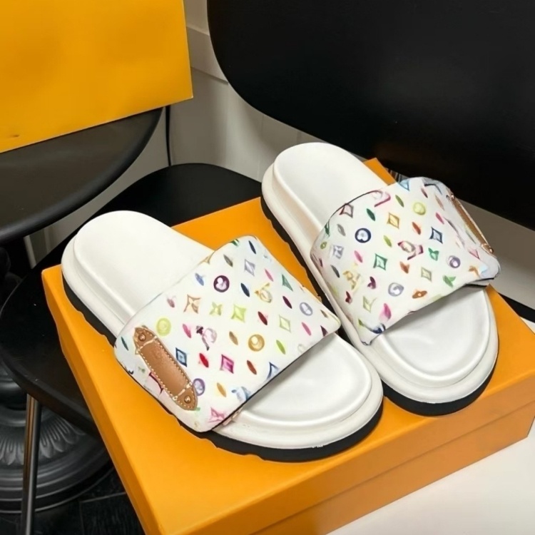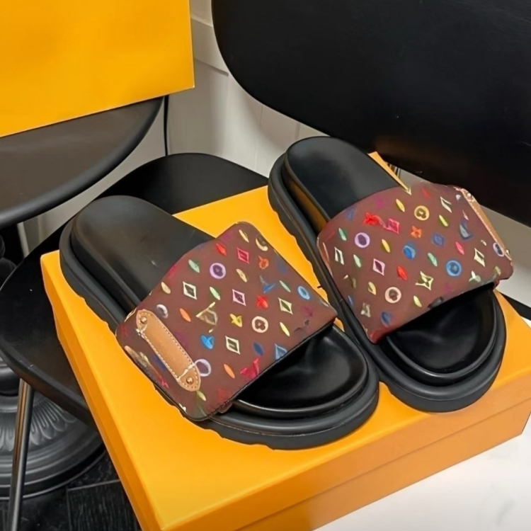 Louis Vuitton LV new floral print fabric slide sandals-5734