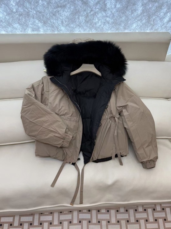 MaxMara reversible down jacket with fur-trimmed hood and elasticated waist-5348