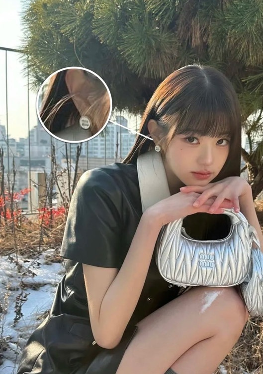 MIUMIU white enamel letter metal round button earrings-3892