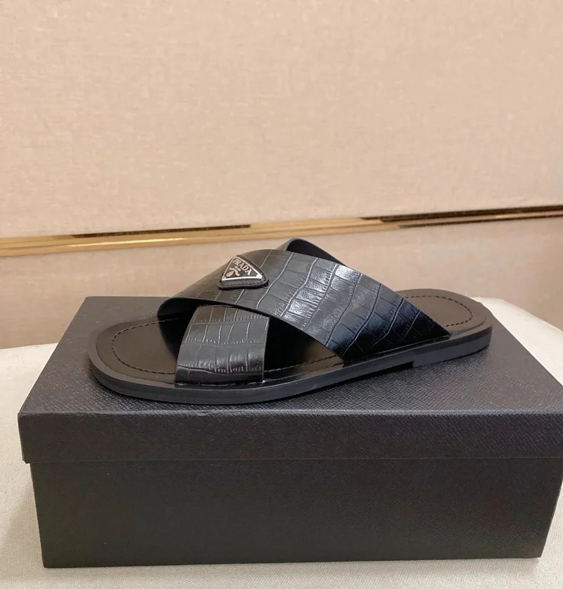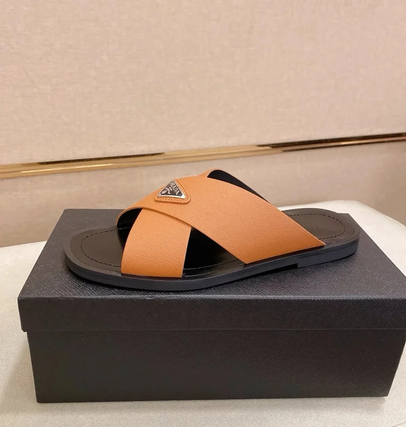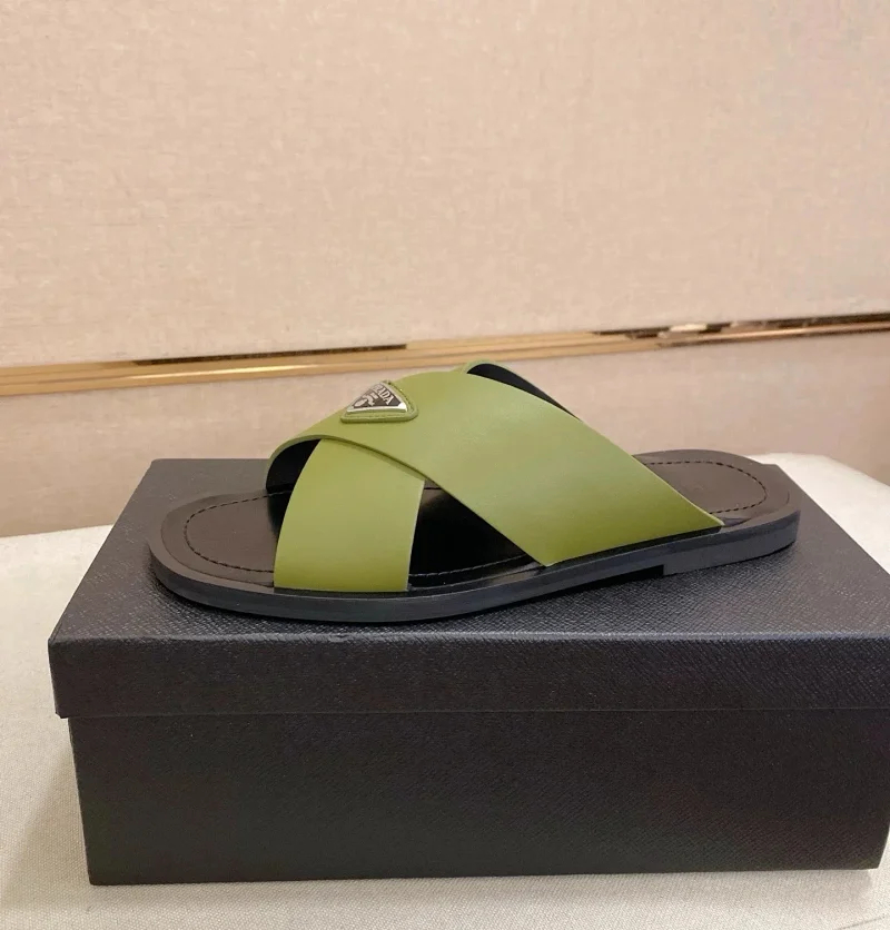 Prada Ultralight Breathable Leather Cross Slippers-5553