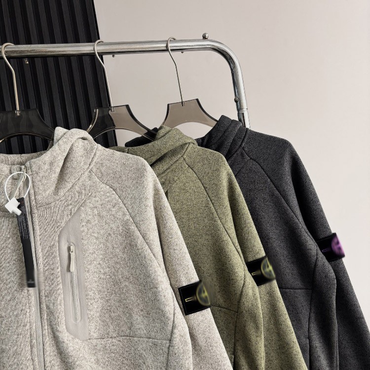 Stone Island zip-up fleece-lined hoodie jacket-5247