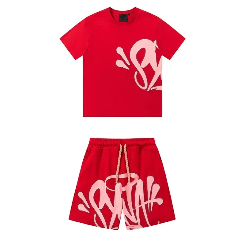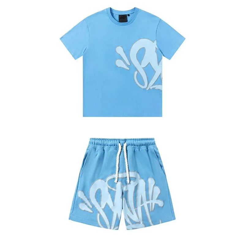 Syna World foam letter print casual short-sleeved T-shirt shorts set-2873