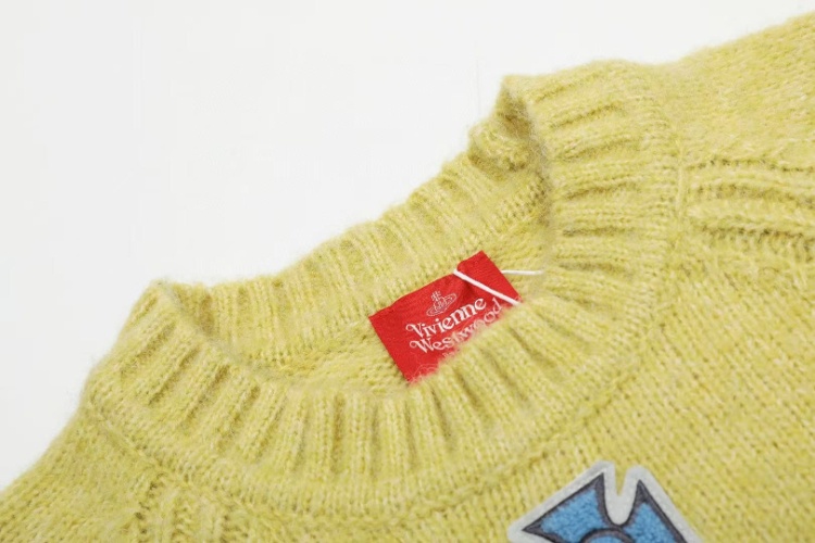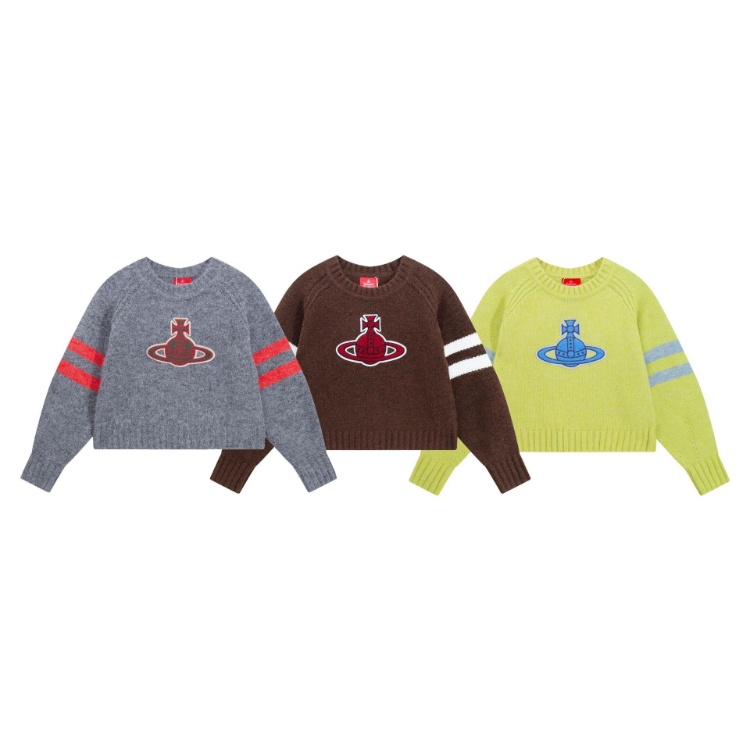 ViVienne Westwood New Tricolor Yarn Patchwork Crew Neck Sweater-6395