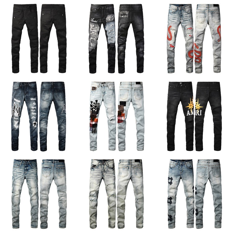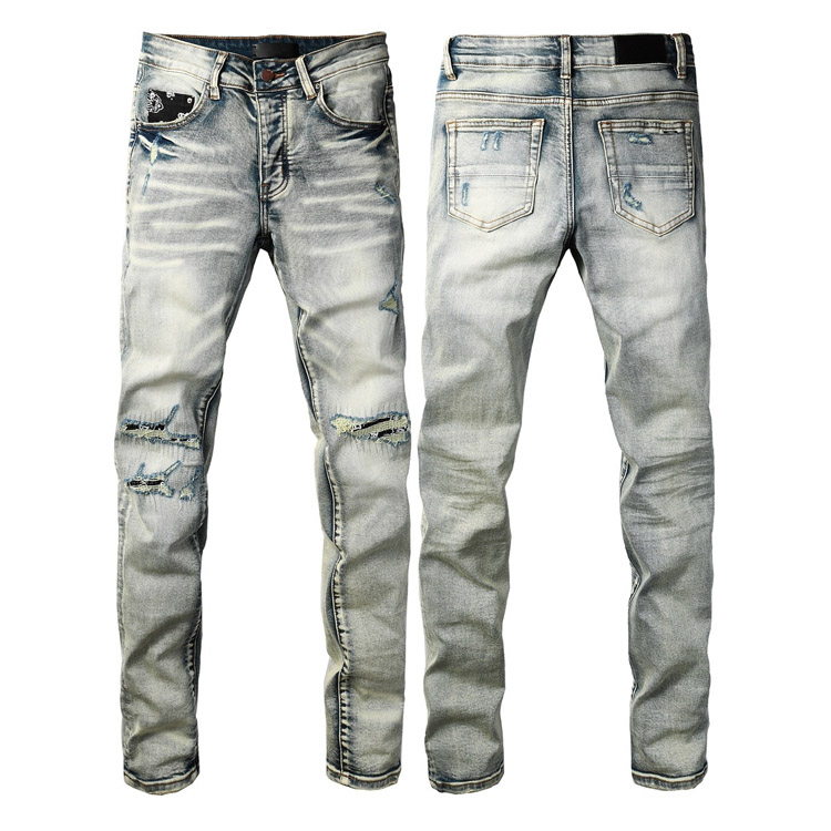 Home > AMIRI new letter LOGO ripped patch slim-fit skinny jeans-4253