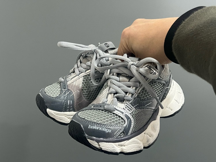 Balenciaga stapler round toe lace-up low-top distressed children's shoes-4164