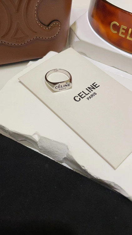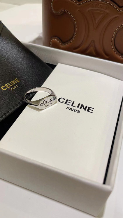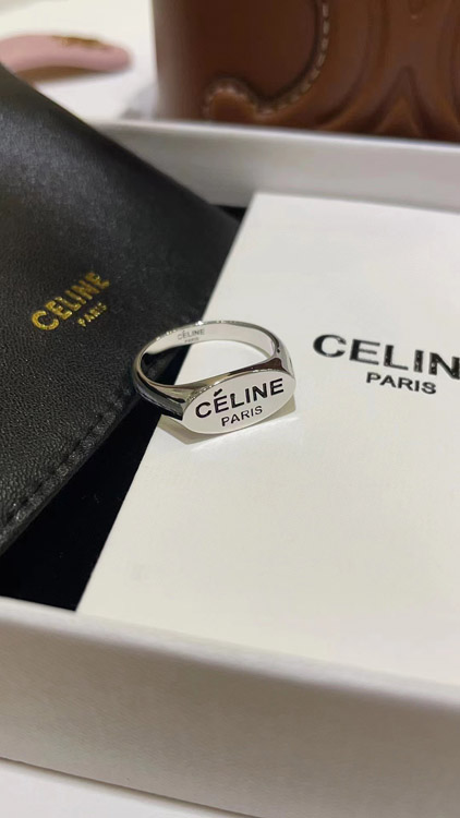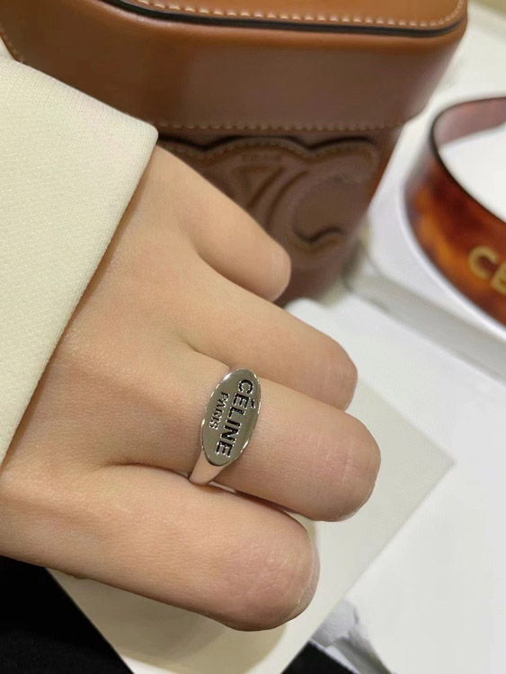 Celine black letter print silver ring-3737