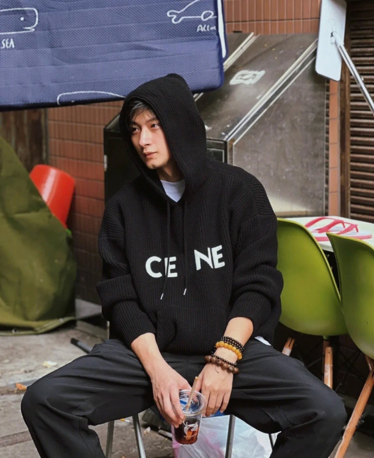 Celine logo patch wool hooded knitted sweater-5448