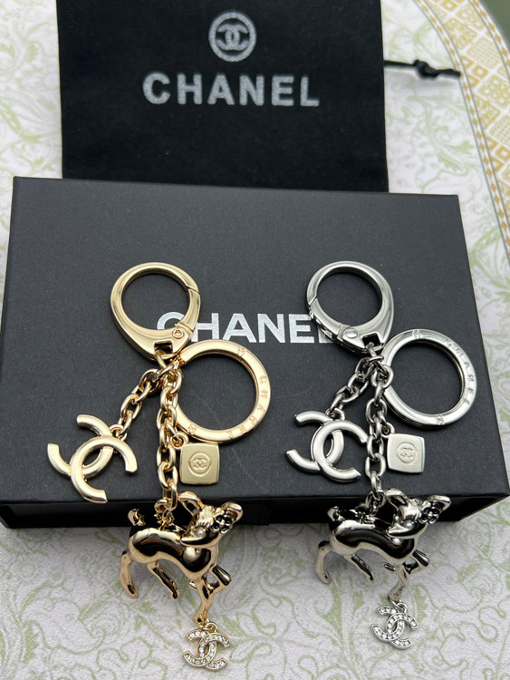 Chanel double c rhinestone pearl deer keychain-3835