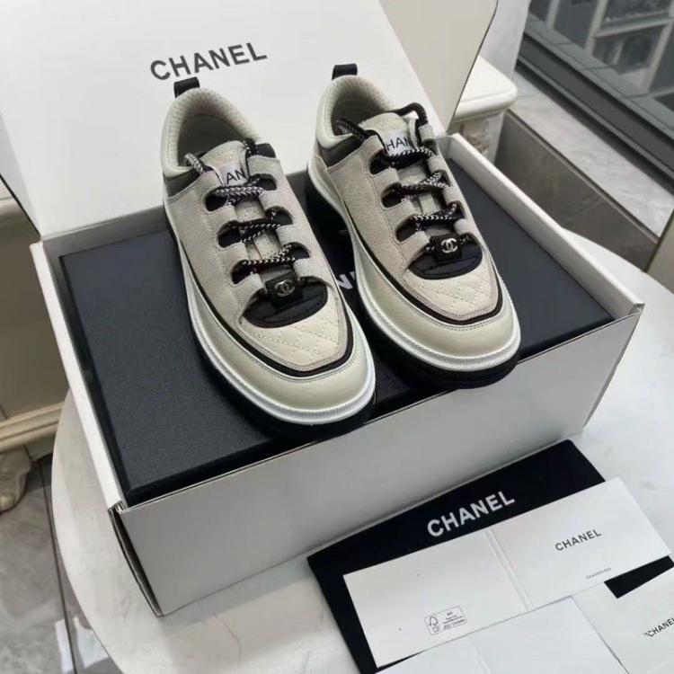 Chanel new platform panda-style color-blocked quilted dad sneakers-5702