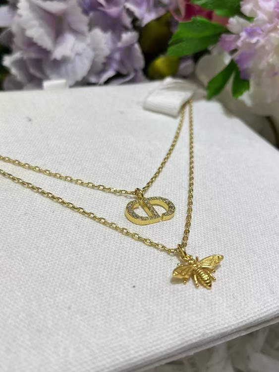 Dior gold diamond bee pendant double necklace-3706