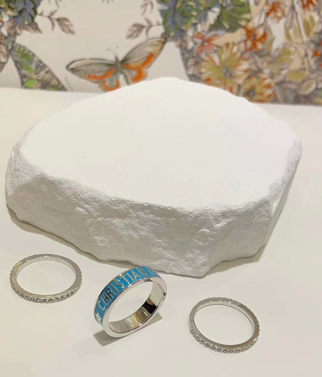 Home > Dior gold letter blue enamel diamond ring set three-piece set-3710