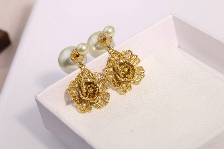 Dior large and small peony pearl earrings-3771