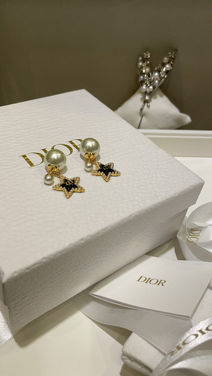 Dior navy blue star pearl double ball earrings-3891