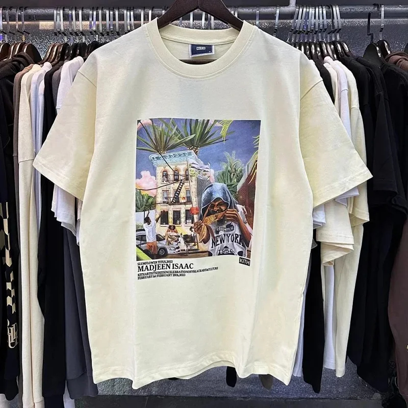 KITH High definition printed double-yarn pure cotton casual short-sleeved T-shirt for men and women-1883
