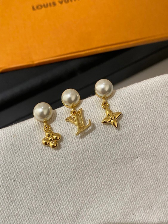 Louis Vuitton LV three-piece earrings with pearl letters-3608