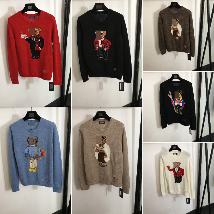 Polo Ralph Lauren new stylish teddy bear jacquard pattern pullover wool knit sweater-5410