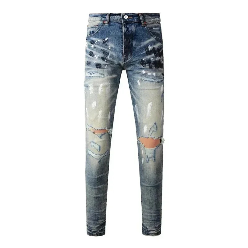 Purple New Men's Vintage Distressed Slim Skinny Jeans (34 styles)-2444